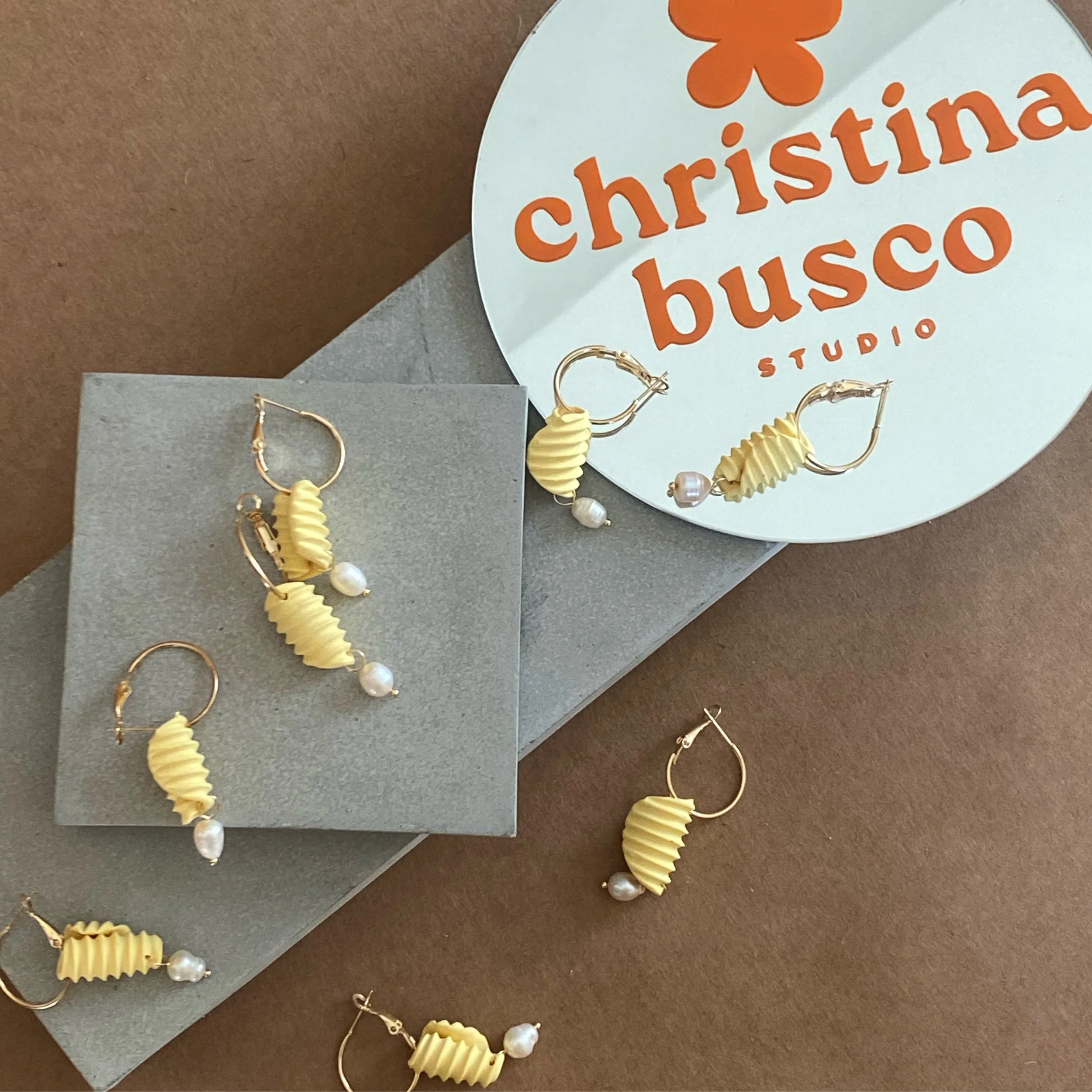 Christina Busco Studio creates whimsical, handmade earrings and ornaments inspired by everyday delights — from Italian cuisine to playful natural motifs. Each piece is crafted with care, turning small moments and favorite flavors into wearable art. The brand celebrates joy, creativity, and a touch of humor, offering accessories that spark conversation and delight the senses